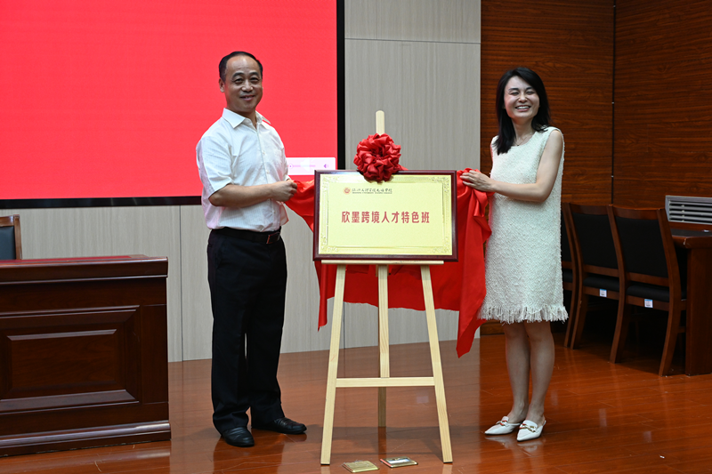 7月5日下午,学院欣墨跨境新媒体人才特色班成立仪式举行。学院院长沈红卫、副院长周思红、欣墨集团副董事长黄狄来出席仪式,语言文学分院、欣墨集团相关负责人、教师代表与全体学员参加仪式。