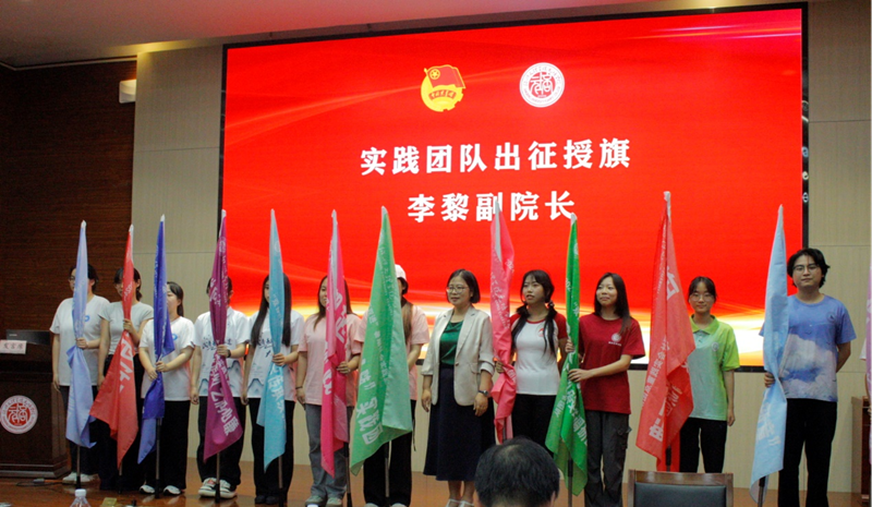 7月8日晚,太阳举行2024年“双百双进”暑期社会实践暨思想政治理论课暑期社会实践出征仪式。学院副院长李黎为社会实践团队出征授旗,党委副书记石旭明讲话,各分院书记、社会实践团队学术指导教师、带队指导教师社会实践团队全体成员参加仪式