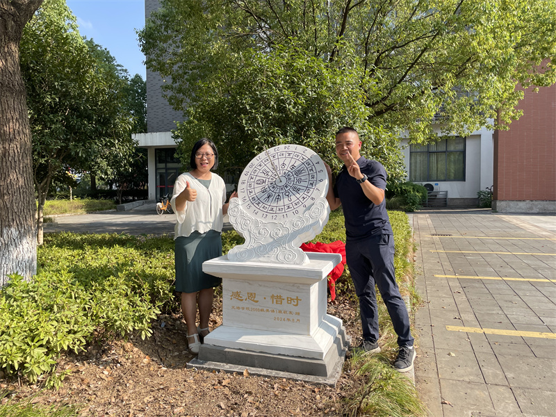 座谈会前,为感谢母校的培育之恩,英语专业1班向学院捐赠日晷。李黎代表学院接受捐赠,并与班级代表王伟平校友共同为日晷揭幕。