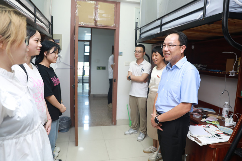 临近傍晚,梁瑜、沈红卫在办公室、学工部和相关分院负责人陪同下,专程赴学生公寓走访看望2024级新生。“同学,你来自哪个省份?”“今天是谁陪你一起过来的?”“这里的气候、环境还适应吗?”交流过程中,梁瑜、沈红卫详细了解新生们的来校路途、专业方向以及对未来的规划等,与新生及家长诚恳交流,悉心叮嘱同学们踏入新校园,要及时适应新环境,尽快融入新集体,学会相互理解,彼此包容,携手并进,共同成长;深情激励同学们步入人生新阶段,要脚踏实地,志存高远,牢记初心,学好知识,在新的青春赛道上奋力奔跑,为国家、为社会贡献自己的青春力量。