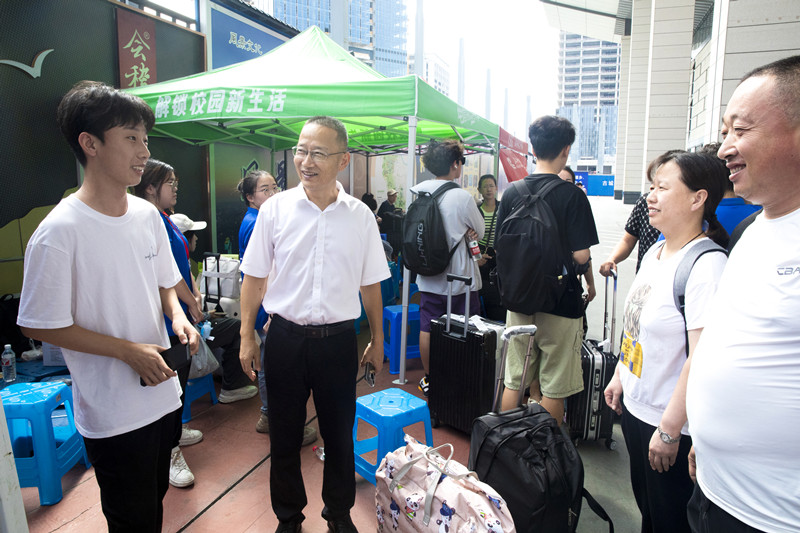 院领导一行赴车站看望慰问志愿者,迎接新生和家长