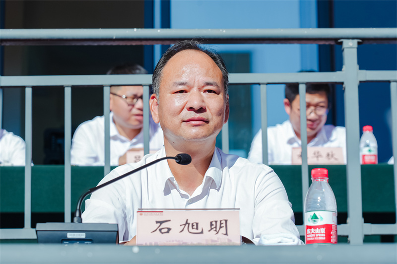 军训团政委、学院党委副书记石旭明主持军训成果汇报暨总结表彰大会
