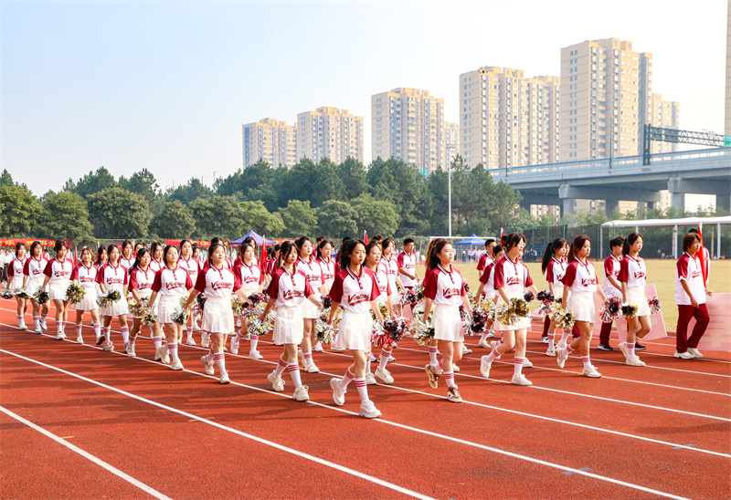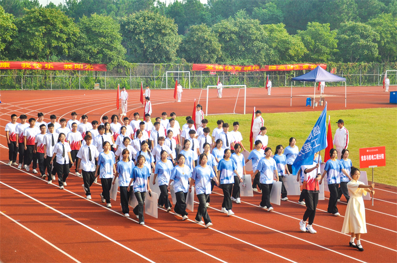 8时,第十七届综合运动会正式开始。伴着《运动员进行曲》的激昂旋律,国旗方阵、会旗方阵依次进入会场,各分院代表队以专业特色与创意编排,呈现充满激情与活力的表演。在嘹亮的国歌声中,全体师生面向五星红旗行注目礼,齐声高唱中华人民共和国国歌。