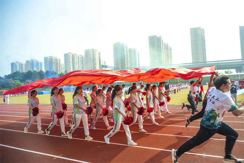 10月11日上午,院第十七届综合运动会在北区田径场开幕。校党委委员、院党委书记梁瑜,院长沈红卫,院党政领导班子成员李黎、沈玮、俞国芬、周思红、王学炎以及本届运动会组委会全体成员在主席台就座。开幕式由院党委副书记石旭明主持。