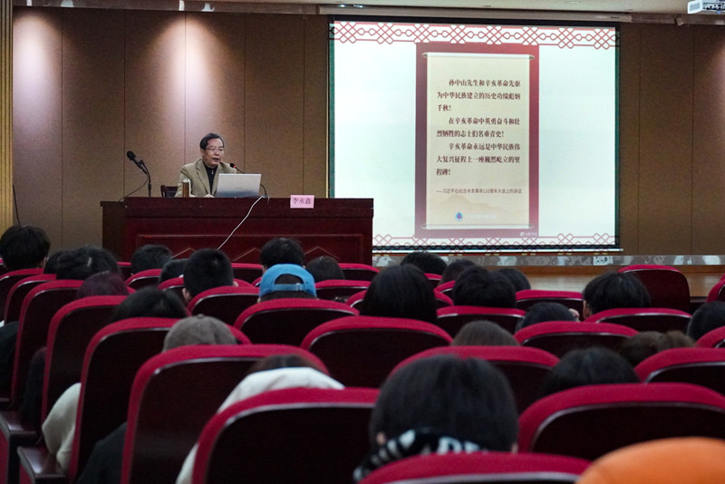 2025年3月12日是中国民主革命伟大先驱孙中山先生逝世100周年。当天,学院“红色讲堂”第15讲“辛亥革命与绍兴”在红色学府红色报告厅开讲。绍兴文史专家、绍兴文史馆副馆长绍兴市委宣传部常务副部长、绍兴市政府副秘书长李永鑫受邀专题讲座。马克思主义分院教师和学生代表聆听了讲座。
