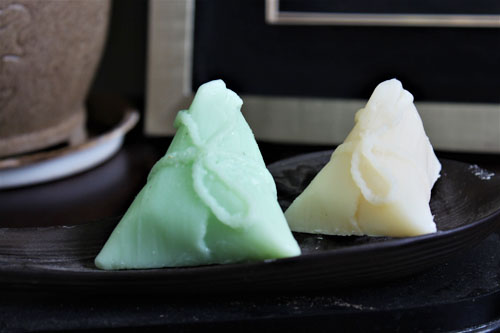 在端午节到来前夕,除了品尝应节的传统食品,学生们还运用专业所长,发挥奇思妙想,自制了各种晶莹剔透、香气怡人的“粽子型”手工皂,包裹着粽叶,