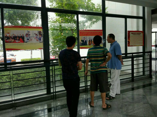 走出教室,党员们来到分院一楼东大厅,参观“撸起袖子加油干·凝心聚力奔小康——迎接党的十九大胜利召开”专题图片展。展览分为“经济建设成就辉煌”、“向着全面小康大步迈进”、“工业发展成绩显著”、“农业农村飞速发展”、“生态文明建设成就喜人”、“科技创新成果丰硕”、“大力推进文化体制改革”、“教育事业迈上新台阶”、“反腐倡廉形成震慑”、“外交取得重大成就”、“强军目标正在靠近”、“体育事业连创佳绩”等十二个部分,图文并茂地展示了党的十八大以来,全党、全军、全国各族人民紧密团结在以习近平同志为核心的党中央周围,党和国家各项事业迅速发展的生动实践、光辉成就以及宝贵经验。“撸起袖子加油干·凝心聚力奔小康”专题图片展,激励大家紧密团结在以习近平同志为核心的党中央周围,统一思想、携手进步,凝心聚力促发展。