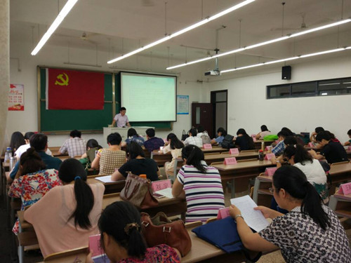 9月27日下午2点,语言文学分院教工党支部在教学楼4号楼402会议室开展“喜迎党的十九大·做好学生引路人”主题党日活动,分院党总支负责人等28位党员同志参加本次活动。