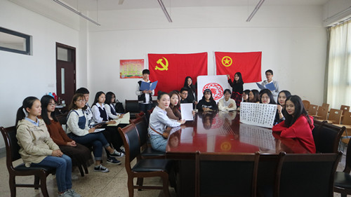 为迎接中国共产党第十九次全国代表大会的胜利召开,语言文学分院组织师生观看十九大开幕会直播,并结合文学类专业特色,开展以“喜迎党的十九大,唱吟中国梦”为主题的家书、朗诵、摄影、书法、剪纸、“越城区农村文化礼堂满意度调查”实践调研等特色系列活动,记录校园内外迎接党的十九大召开盛况,展现学生成长、责任与担当,表达师生对祖国与党的热爱之情。