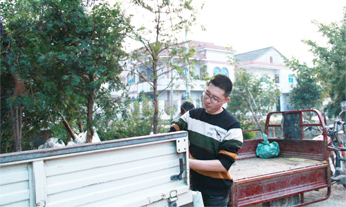 日前,记者跟随学院校友联络办公室、基建后勤处的老师们一同来到张春华在长兴县龙舌咀村的家中,一行人刚到时,张春华正在细心的将刚挖好的红豆杉根部包好,用红丝带紧紧的扎住,依次放在路旁,等到将180株红豆杉树全部装车结束时已是天色渐暗,张春华告诉记者,他打算当天晚上直接将杉树运抵母校,种植在北区的草坪上。“真是期待着来年开出的一片火红呢!”望着这些细心栽培出来的小树苗,忙碌了一天的张春华笑着说,“红豆杉有非常好吸毒和防癌的功效,开花结果时一片火红,就像母校的事业前途红火一样,寓意非常好,而且这个季节很适合红豆杉的移植播种,这次家中正好种植了一片,想着借这个机会表达对母校的培育之恩。”作为校友,张春华用自己独特的方式来反哺母校,毕业多年,他深深感恩母校的栽培,也一直密切关注着母校的发展。他发自内心的笑声,真实流露出对母校的一片真挚情谊,以及能为母校贡献自己一份心力的激动和喜悦之情。