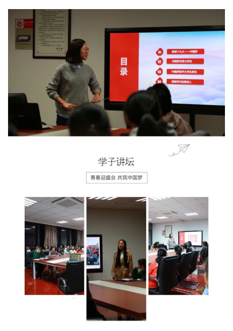 学子讲坛的初衷是“大学生应该用自己的视角发现故事,讲述故事,心系校园、胸怀社会”,以广大学生学习生活中的独特见解以及创新观点为线索,让学生在思考的同时,登上讲台,讲述身边事,主题大至大学生关心的经济,政治,文化,生态等社会热点问题,小至分享学习心得、生活感悟等身边小事,一般由主讲者根据所擅长的领域或独特经历,自选课题、搜集资料、制作课件,以每月一期、每期一分院的方式举行。主讲者可以自荐,或通过分院推荐,经学工部审核把关,组织协调好整个活动,做好学生与讲坛之间的桥梁工作。讲坛主题主要分为四大篇章:文化生活,厚德教育,创新创业和学术科研。目前已开设了2期,主题分别是社会实践之路和青春迎盛会,共筑中国梦。总计吸引了来自学院的百余位学子,他们在听取了经验分享之后提出了很多思考,并立志向优秀学子学习。