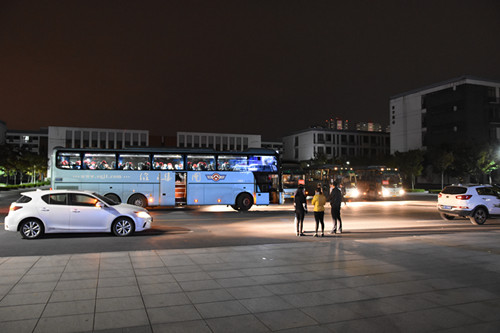 当天凌晨2点30分,秋冬料峭,吹来阵阵寒意。校园中已陆陆续续出现身穿亮蓝色志愿服装的赛事志愿者们。