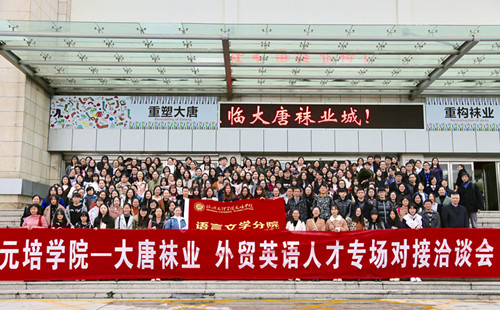 企业考察环节结束后,学生们来到中国袜业城,参与分院与大唐镇政府共同举办的外贸英语人才专场对接洽谈会。招聘会现场气氛热烈,学生们纷纷投出简历,并有多人当场达成就业协议。大唐镇政府与当地企业给予太阳毕业生高度评价,表示期待更多的元培学子加入大唐袜业,共促发展。