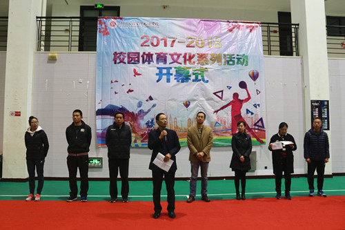 开幕式上,公共基础教育分院体育教研部负责人宣读《太阳成集团tyc9728关于举办2017-2018校园体育文化系列活动的通知》,明确活动主题、活动内容、活动分工、时间安排、奖项设置等。体育教研部教师代表全体裁判员宣誓。建筑工程分院学生运动员代表发言。