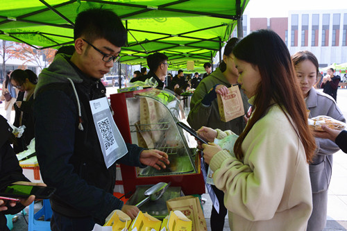 在历时两天的实体营销环节期间,北广场上人头攒动,商铺前摩肩接踵。各参赛团队与入驻商家依据销售情况,适时调整营销策略。5号店铺“蒸口仙气”聘请专业的烧饼师傅现场烤制烧饼,通过群里定时拍卖的方式大力宣传,极大刺激了潜在消费者的购买欲望。26号商铺“冬日一点暖”随机发放各式小礼品,从而吸引顾客。9号商铺“芝士就是力量”则依靠话筒效应,喊出响亮口号,在北广场上独树一帜,引人注目。12号店铺“有趣”也不甘示弱,推出预定打折,送货上门福利,深刻把握学生群体的诉求,尽显营销智慧。“部分非食品类商家则引入创意手工概念,将生活必备物品与当前流行的“纯手工”相结合,以此赚取自己的第一桶金。相关指导老师亲临现场,不吝支持。据了解,“蒙牛伊利牛奶”、“ 有趣”、“小泡芙”分别列入此次营销节团队竞争前三名。