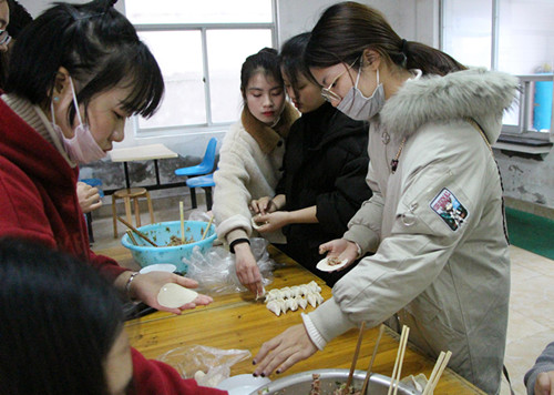 随后,10余位志愿者们不惧早春的寒冷,走进东浦镇敬老院。“奶奶,爷爷,我们又来看您了。”一声亲切问候,老人们高兴地出门迎接。除了在敬老院门口设立“穿针引线”服务站,帮助老人及周围居民提供缝补服务外,大家还分工明确,切芹菜、调饺子馅、包饺子、下饺子一气呵成。金奶奶对志愿者说:“这么冷的天,能吃到你们做的热乎乎的饺子,真好!”