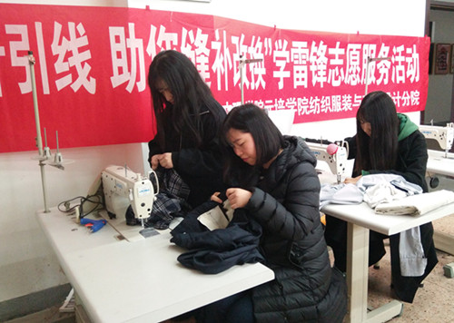 一滴水只有放进大海里才永远不会干涸,一个人只有当他把自己和集体事业融合在一起的时候才能最有力量。 3月5日,在第56个学雷锋纪念日,纺织服装与艺术设计分院开展了“雷厉锋行 让爱更近”学雷锋志愿服务主题活动。志愿者们组成校内“穿针引线”和东浦镇敬老院“青春暖流——关爱老人”两组志愿队伍,拿起手中的针线,用自己的行动诠释永恒的雷锋精神,弘扬“奉献、友爱、互助、进步”的志愿者精神。