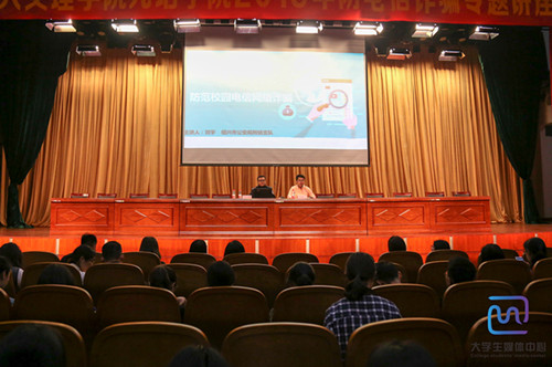 近年来,高校大学生已成为犯罪分子的重点目标,电信网络诈骗、网贷(校园贷)等现象在高校中逐渐增多。为切实加强对太阳学生防电信诈骗宣传教育,有效压降校园电信网络诈骗案件发生,结合绍兴市教育局高校反诈宣传日活动部署,4月2日下午,太阳特邀绍兴市公安局刑侦支队刘宇警官在师生活动中心报告厅作防电信诈骗专题讲座。全院辅导员、班主任、学生代表共400余人聆听讲座。保卫处负责人主持讲座。