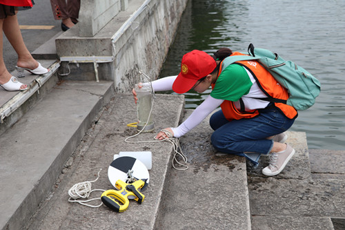 双方代表签署志愿服务基地共建协议,并进行基地授牌仪式。授牌仪式结束后,十二名志愿者和四位“河长”组成四个小队,分别开展河道巡视和水样采集检测。