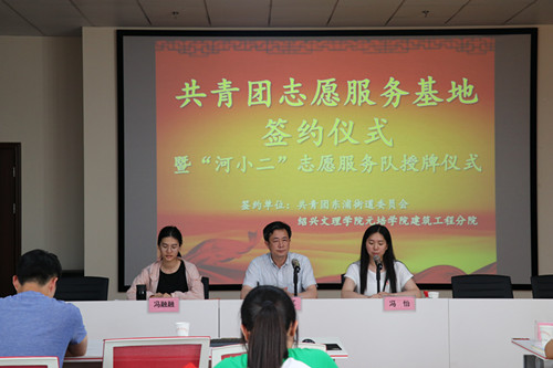 5月17日下午,建筑工程分院与东浦街道团委志愿服务基地签约仪式暨“河小二”志愿服务授牌仪式在东浦“红立方”党群服务中心举行,标志着建筑工程分院青年志愿服务工作进一步走向规范化、制度化、常态化。建筑工程分院党总支书记、东浦街道团委代表出席活动,分院分团委书记、东浦街道“河长”代表以及“河小二”代表参加活动。