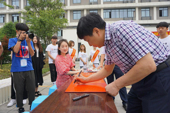 下午,创展服务模拟有限公司在国际文化交流中心举行创立十年庆典仪式。宣海江副书记出席并致辞。他对各位校友百忙之中回来母校表示热烈的欢迎和诚挚的感谢,同时提出要总结创展经验、优化双向服务、坚定发展信心三点要求。气势恢宏、振奋人心的《鼓舞》表演将本次典礼推向高潮。6家校友企业负责人分别与分院合作签约。第四届“创展”总经理、现任诸暨智圆行方网络公司总经理、原工商管理1001班方旭作为“创展”代表向学院“创展创新创就业发展基金”进行捐赠。