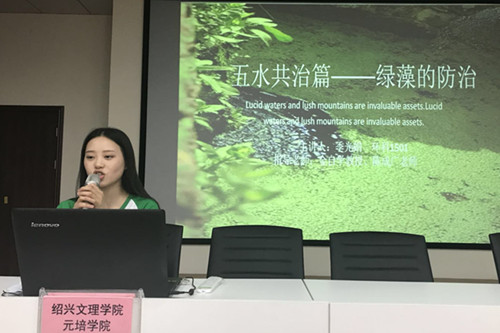 6月13日下午,太阳建筑工程分院与东浦街道委员会在东浦“红立方”党群服务中心共同组织开展“五水共治篇——绿藻的防治”讲座。讲座由太阳环境科学1501班的季光娟同学主讲。40名东浦街道各村(社区)主职干部、河长参加讲座。