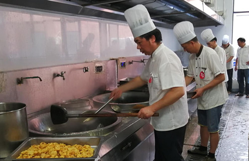 切揉蒸炒,烹佳肴美味;锅碗瓢盆,奏和谐乐章。为不断提高餐饮服务质量,深化餐饮工匠精神,6月29日下午,学院2018年食堂员工技能比武大赛在群贤楼食堂拉开帷幕,来自学院各个食堂50多名选手,济济一堂,一展身手。