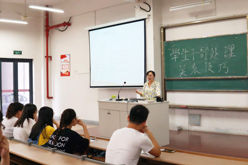 分院团学负责人结合自身多年学生工作经验、优秀学生干部培养心得及个人提炼的“学生干部关系处理技巧”工作手册,围绕如何处理学生组织与班级关系、务实与务虚关系、学生干部与老师的关系与同学间关系,提出“理清思路、找准定位、提升意识、端正态度”四种处理和解决方法,指导学生干部在下半年迎新工作中进一步提升沟通技巧。
