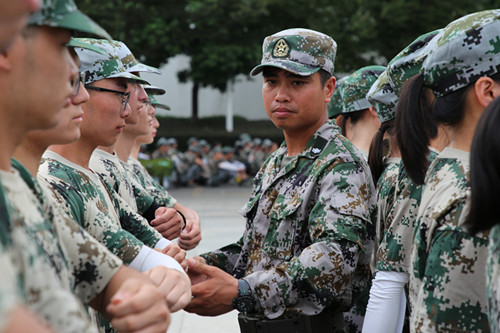 盛夏八月的训练场,骄阳似火,酷热难当,参加军训的同学们挥洒汗水,汗湿衣背,皮肤晒黑了、衣服浸湿了、喉咙喊哑了……短短几日的军训时光,同学们不喊苦不喊累,斗志满满,俨然就是一名名真正的军人,但当彼此间每每谈及军训印象时,同学们首先聊到的永远是为同学们开展训练的承训教官。每天清晨至夜幕降临,他们认真履行职责,以高标准要求学生,不厌其烦用严格的训练、严谨的作风、坚韧的精神、温情的陪伴与关怀时刻为同学们作出最好的示范,带给同学们无限感动与崇敬。