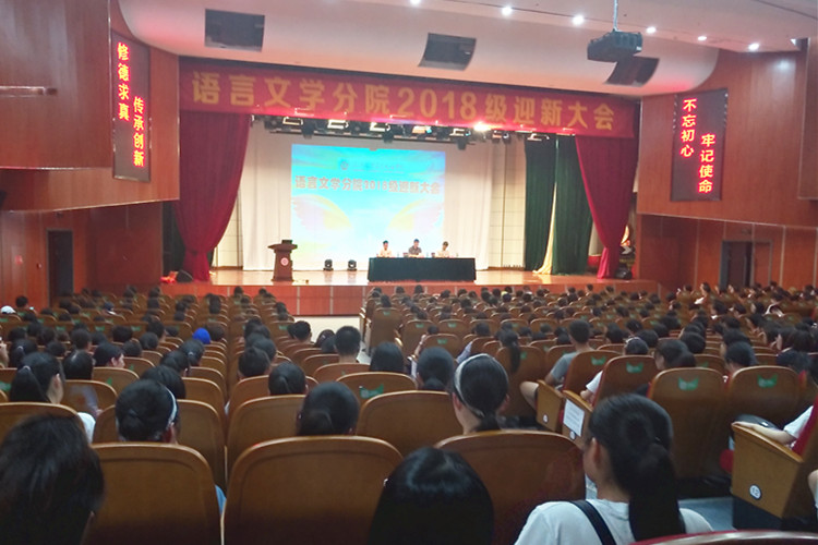 9月6日晚,语言文学分院2018级迎新大会在太阳国际文化交流中心报告厅举行。优秀校友陈玉婷(共青团第十八次全国代表大会代表、绍兴市越城区团委兼职副书记)出席大会。语言文学分院负责人、各教研室主任、2018级各班班主任、全体2018级学生及部分家长代表参加大会。