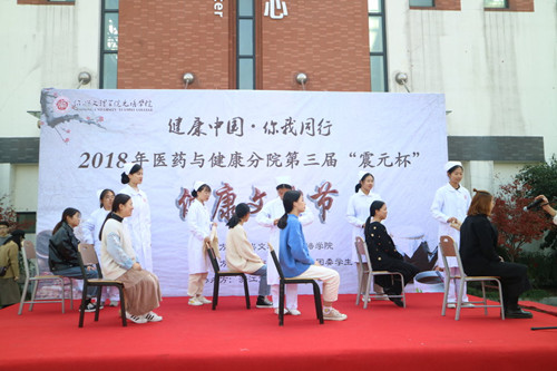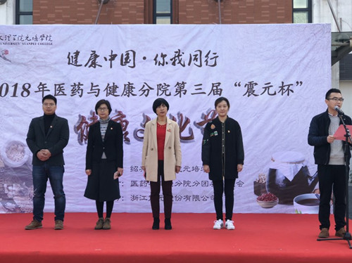 为响应“健康中国”国家战略、推进“健康绍兴”建设,弘扬大健康理念。11月28日,以“健康中国,你我同行”为主题的医药与健康分院第三届“震元杯”健康文化节在大学生活动中心北广场开幕。学院纪委书记朱小芳出席开幕式。分院与综合办相关负责人、大一新生与学生会全体成员参加开幕式。开幕式由分院党总支负责人主持。