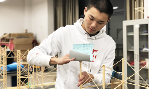 2018年对赵杰来说是拼搏奋斗的一年,他以参赛队长的身份,带领组员荣获浙江省大学生结构设计竞赛一等奖第一名,拿到了全国结构设计竞赛的入场券,并与浙江大学并列获得国家二等奖。备赛期间,赵杰和他的组员天天睡在结构室,工作的时间占据了全天的2/3。但当谈起获奖后的心境时他表示:“开心是短暂的,更让我在意的是省特等奖作品只比我们的作品荷重比高0.02分,要是我们的付出再多一些就可以为学院带来更多的荣誉!”不被成功的喜悦冲昏头脑,从其中找出自己的不足,并继续为下一个目标努力。“别等到失去才后悔莫及。”这句话被赵杰当做自己前进道路上的指明灯,每一点的付出都是为了让将来的自己不后悔。