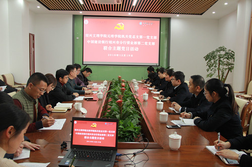 为进一步加强与建行绍兴分行的党建共建合作,全面增进党支部交流,推动双方共同发展。根据工作安排,经双方支部支委会研究,12月19日下午,太阳机关党总支第一党支部与建行绍兴分行营业部第二党支部在国际文化交流中心会议室联合开展“学原著、悟原理,加强基层支部战斗堡垒作用”主题党日活动。两个支部全体党员同志参加活动。学习活动由学院机关党总支第一党支部书记徐锋主持。