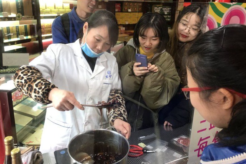 分院学生党员在震元堂开展学习制作阿胶糕的活动