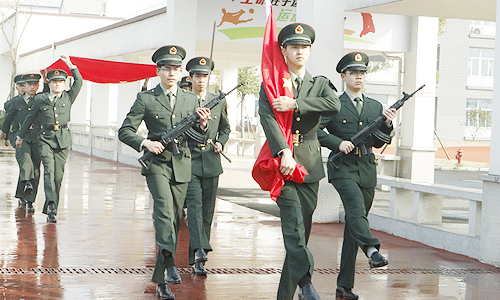 迎着朝阳,校园督查队整装肃立,国歌声响,鲜艳红旗冉冉升起。3月4日清晨,太阳领导和校园督察队的国旗手驱车前往绍兴市锡麟中学参与升旗仪式。