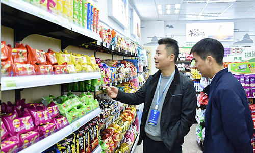 专家组一行随后赴南区超市现场查看了店容店貌、购物环境、设施设备、布局陈列、服务规范等情况,并现场进行了师生问卷调查和员工业务知识提问,查阅了商品质检报告、供应商索证等各类台账。