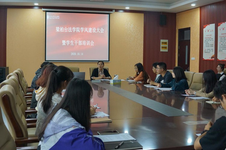 梁柏台法学院开展学风建设大会暨学生干部培训会。分院全体学生干部参加大会。会上,分院党总支书记表示学风建设方案以“管理、激励、引导”为主旨,以实现人才培养和学生全面协调发展为中心,以宣传教育为引导,以制度建设为突破口,以日常行为养成为基础,以校园文化活动为载体,营造良好育人环境与学习氛围,坚持教育引导、规范管理与学生自我教育相结合,帮助学生明确学习目的,树立“热爱学习、学会学习、善于学习、终身学习”的观念,进一步提升分院学风水平。分院党总支书记希望学生干部要起好带头作用,发挥乐于奉献、勇于担当、敢于拼搏的精神,学以致用、服务同学、展现青春风采,清除不作为、懒作为、动机不纯、官位思想的歪风邪气,扛起应有的责任与使命。