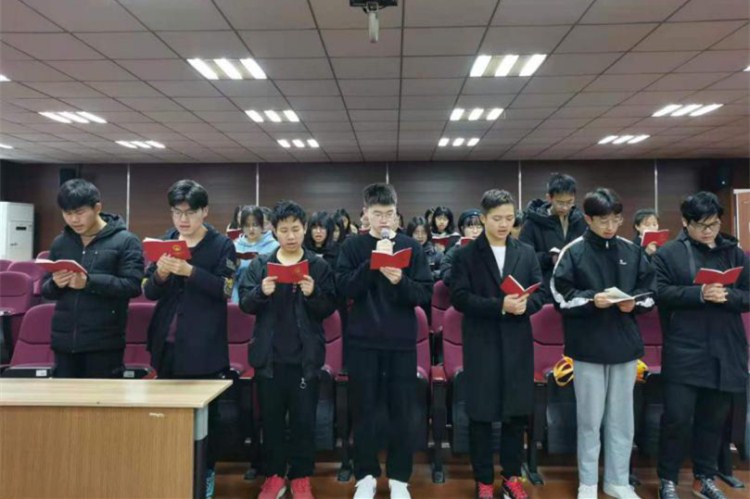 12月4日早上,法学院在学院模拟法庭举行了宪法晨读活动,大一年级部分同学参加了本次活动。同学们精神饱满,情绪激昂,大声朗读,用心体会宪法的庄严与神圣。随后,同学们在梁柏台雕像前进行了宪法宣誓。宣誓前陈金东老师对同学们讲述“要着力增强宪法宣传的针对性、时效性,认真贯彻落实宪法,全面推进依法治国,希望广大同学牢固树立宪法和法治意识,认真学法、守法,依法办事。”大一年级30名同学进行宣誓,雄浑豪壮的国歌伴随着庄严的誓词环绕在红色学府大厅,同学们严肃认真的态度表现出了对宪法崇高的敬意。