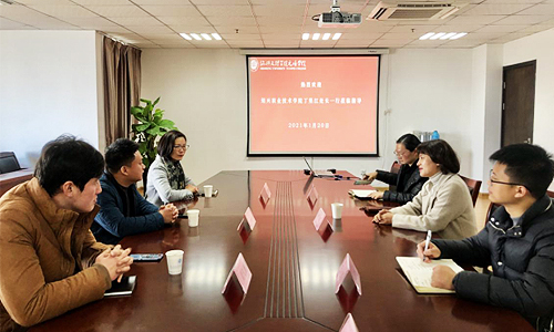 1月20日下午,绍兴职业技术学院后勤处处长丁坚江一行来院考察交流。资产经营公司负责人及餐饮、商贸等相关人员陪同座谈。