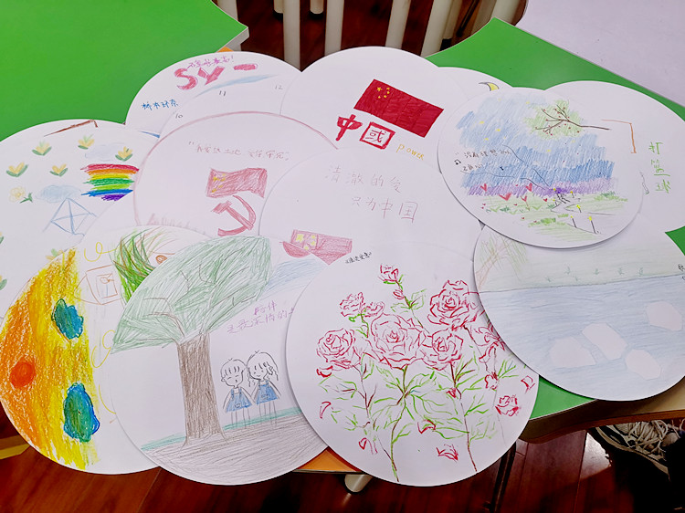 “我做的主题是‘加油中国’,疫情期间医护人员和志愿者‘舍小家为大家’的大爱精神令我十分触动”,“我的是祖国的大好河山和多彩风景,希望有一天能切身感受到祖国各地不同的魅力”,“经济、军事、农业、教育,我想展示中国的生生不息”......学生们围成一桌,分享着自己对祖国的“爱”。