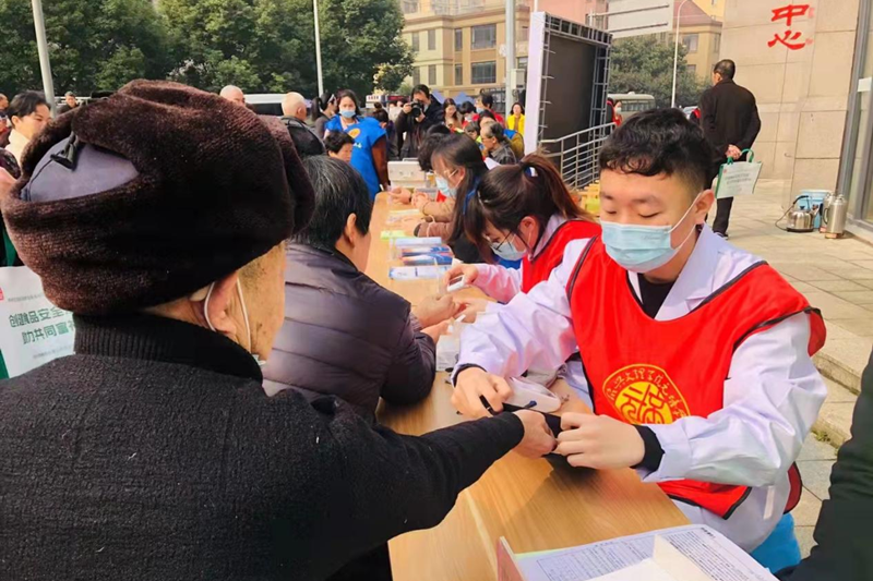 仪式结束之后,社区工作人员和志愿者们纷纷支起了一个个“小摊”,给居民们免费提供“测量血糖血压”、“理发”、“检查口腔健康”等服务,每一个“小摊”前都排起了长长的队伍,一传十十传百,前来参与的居民越来越多。其中,由护理专业学生负责的“测量血糖血压”尤其“火爆”。还有一部分学院志愿者手拿有关“电信诈骗”的传单,走入小区,深入居民,积极宣传“电信诈骗”相关知识,做好防诈宣传教育工作。