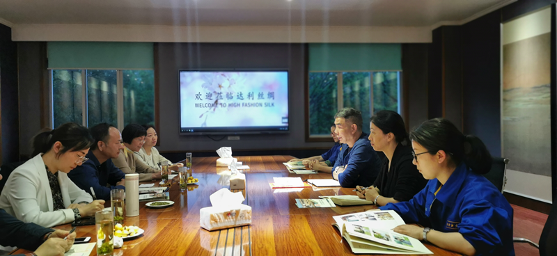 院党委副书记石旭明带队在“达利丝绸”、“美盛文化”参观调研,听取情况介绍,洽谈合作