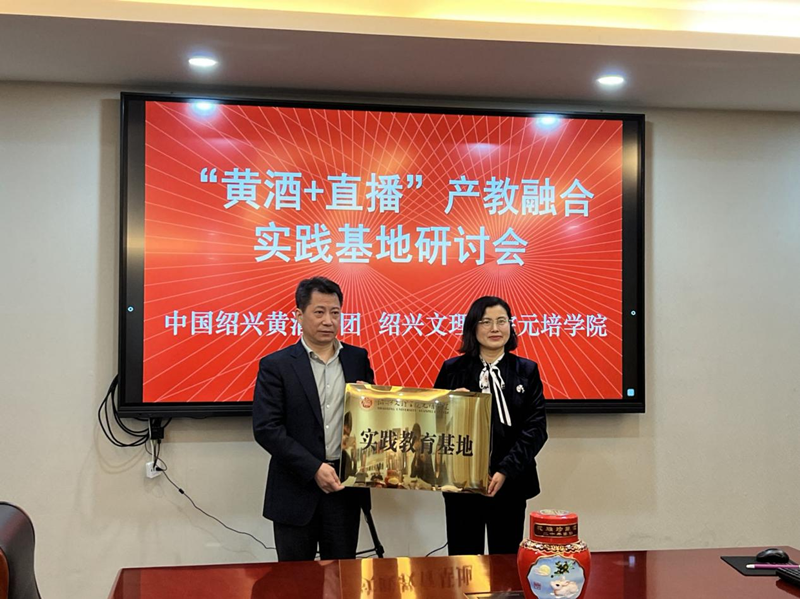 举行实践教育基地授牌仪式,学院副院长沈玮向中国绍兴黄酒集团党委副书记杨文龙授牌