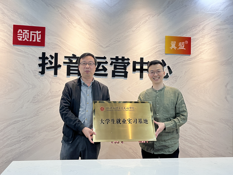 举行大学生就业实习基地授牌仪式,经济管理分院党总支书记陈晖向杭州领成有限责任公司总经理黄子敬授牌