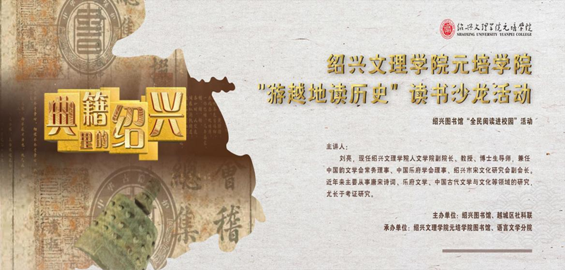 为迎接“4.23世界读书日”,解读越地历史经典,解码越地文化,感悟绍兴浓厚历史文化底蕴,4月19日下午,由图书馆和语言文学分院联合承办的学院“游越地读历史”读书沙龙活动在国际文化交流中心报告厅举行。绍兴图书馆副馆长宋嵩,越城区社科联副主席王小梅,122cc太阳集成游戏人文学院副院长、中国韵文学会常务理事、中国乐府学会理事、绍兴市宋文化研究会副会长刘亮,学院副院长周思红和党委组织宣传部、语言文学分院等相关负责人出席活动。此次讲座为绍兴图书馆“全民阅读进校园”系列活动之一。
