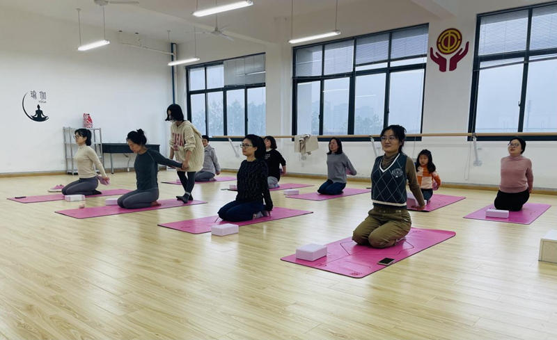 伴随着悠扬、舒缓的音乐,端坐在瑜伽垫上的教师们放下一身疲惫,认真听瑜伽老师耐心讲解动作要领,跟着老师的示范动作专注练习,现场氛围轻松又祥和。这是学院教职工瑜伽协会开展活动的一幕。