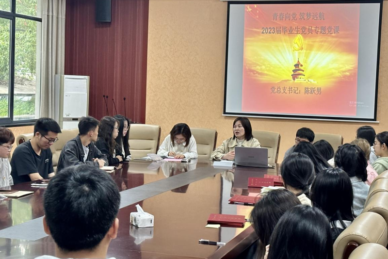 会上,学生支部书记结合多个案例开展廉洁教育主题讲座,叮嘱毕业生党员走向工作岗位,继续守住廉洁底线、养成廉洁意识、践行廉洁之风。全体党员再一次重温入党誓词、签订《毕业生党员廉洁从业承诺书》。辅导员以党员同志“以身作则,文明离校”为主题发起文明和谐离校倡议。党总支负责人作“青春向党 筑梦远航”主题党课,从“增强党员意识,不负组织期望”、“坚持不断学习,争创一流业绩”、“接受教育管理,加强党性修养”、“珍惜最后的校园时光,做文明离校表率”以及“先锋担当,带头就业”等五个方面为毕业生党员上了一堂深入浅出的党课。