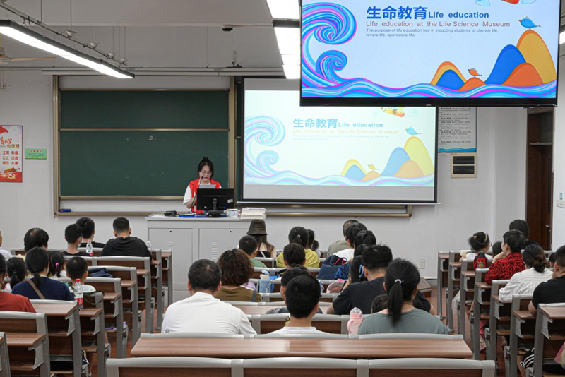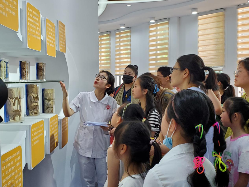 生命健康教育课上,学生志愿者分模块讲述“我是怎么来的?”“我该如何看待生命?”“我该怎么保护自己?”耐心引导大家树立正确的价值观念、养成健康良好的生活习惯等。在人体生命科学馆,伴随着讲解和问答互动,小朋友们在认真参观和学习过程中,深切感受到人体之美,体会生命之珍贵。活动尾声,学生志愿者向小朋友们送上了节日的祝福。