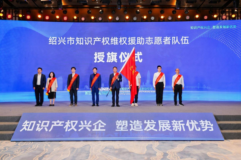 4月23日上午,梁柏台法学院8位师生作为知识产权维权援助志愿者代表应邀参加绍兴市举行2024年知识产权宣传周活动启动仪式,仪式现场梁柏台法学院负责人接受授旗。