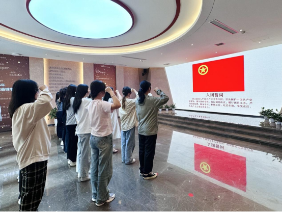 展馆内,同学们认真聆听“先烈的力量 建党初期的绍兴人”主题党课,深入了解建党初期绍兴杰出英才先进事迹在团旗下重温入团誓词,进行庄严宣誓